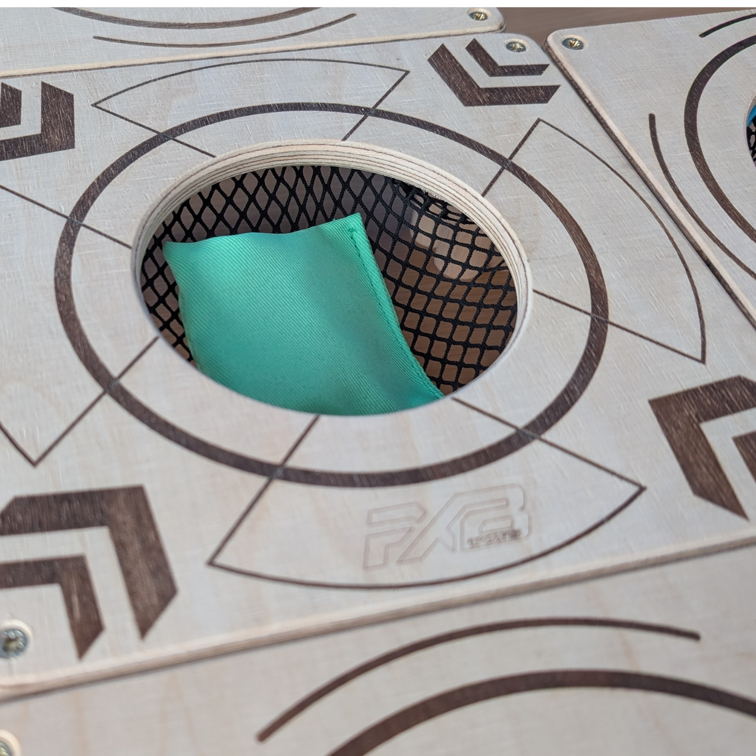 Bag’n’Hole ist ein rasantes Wurfspiel, bei dem kleine Sandsäckchen auf Zielscheiben geworfen werden.