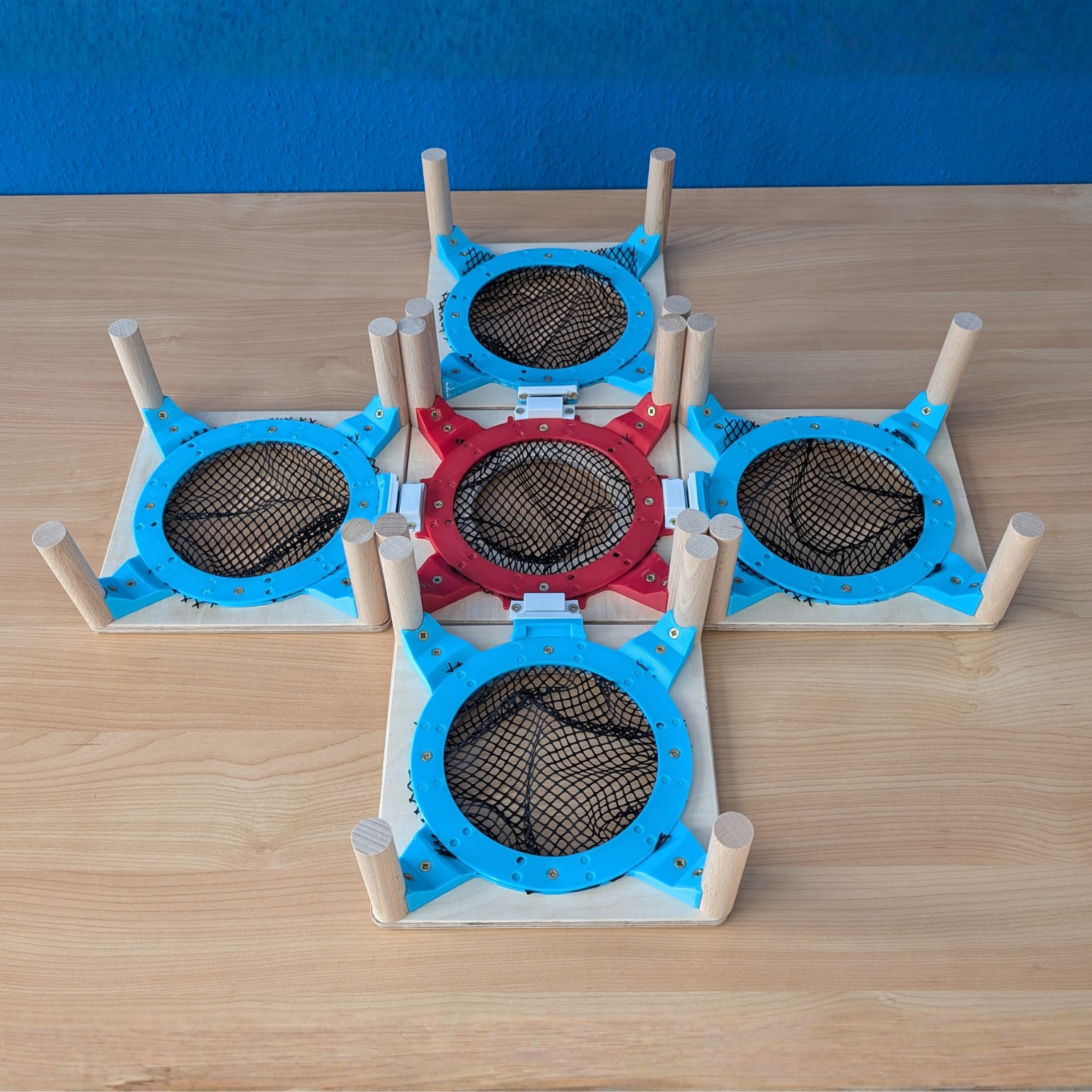 Material: Holzplatten (Multiplex Birke), Leinensäckchen, PLA 3D-Druck