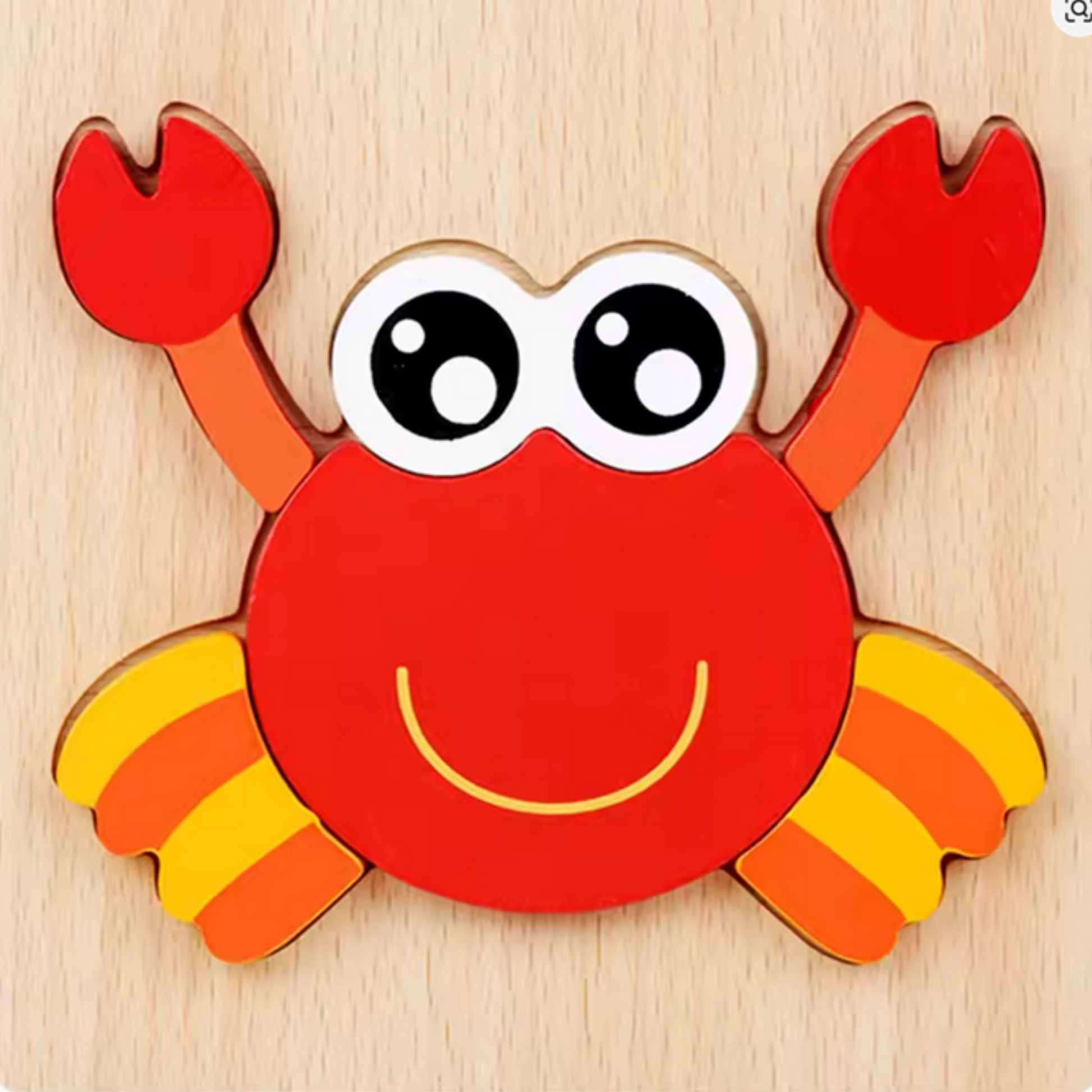 4 Holzpuzzle - Ente, Schnecke, Krabbe, Frosch