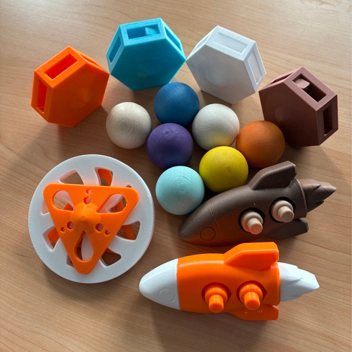 Weitere Spielzeuge wie Drehscheibe, Rennwagen oder Rakete findet ihr auch in unserem Shop: ebenfalls aus Hybridmaterial gefertigt